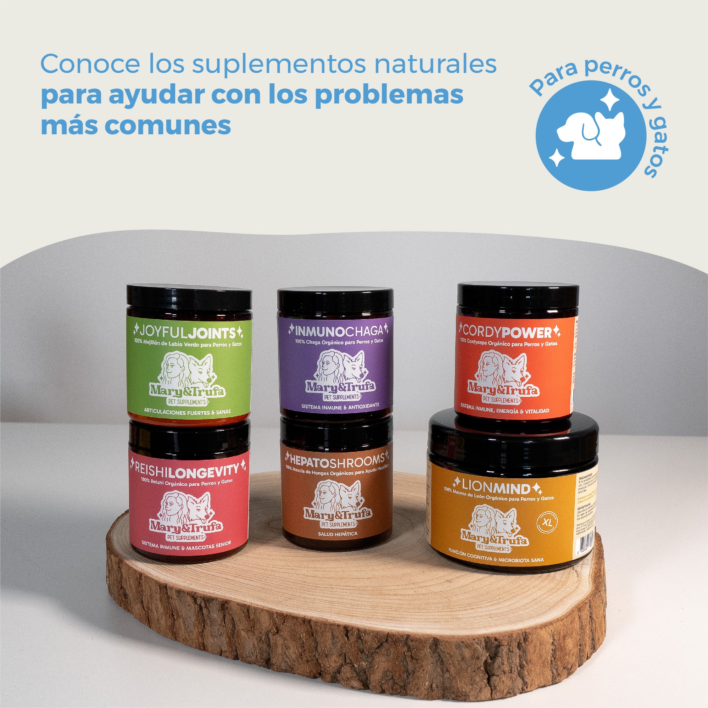 - 🍄 Acción antioxidante + inmunomoduladora - El más antioxidante de todos los hongos. Combate el estrés oxidativo, ideal para animales senior o con defensas bajas.